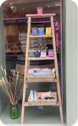 Dans notre boutique vous trouverez : • Nos savons saponifiés à froid, fabriqués avec amour et sans huile de palme • Une gamme complète de cosmétiques naturels : soins visage, corps, baumes, déodorants… • Une sélection de tisanes et produits d’herboristerie... • Des produits ménagers naturels, pour un entretien écologique de la maison. • Du linge de bain, des accessoires zéro déchet et des idées cadeaux utiles et durables. • Un petit rayon épicerie locale, composée de matières premières sélectionnées chez nos fournisseurs, utilisées dans la fabrication de nos savons.