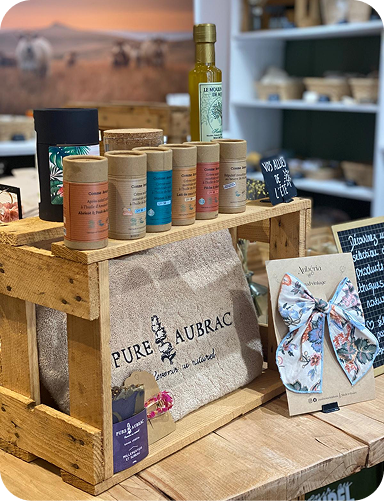 Savons artisanaux, cosmétiques naturels, huiles, herboristerie, accessoires pour la maison et produits locaux… toute l’âme de Pure Aubrac se retrouve désormais dans notre boutique physique.